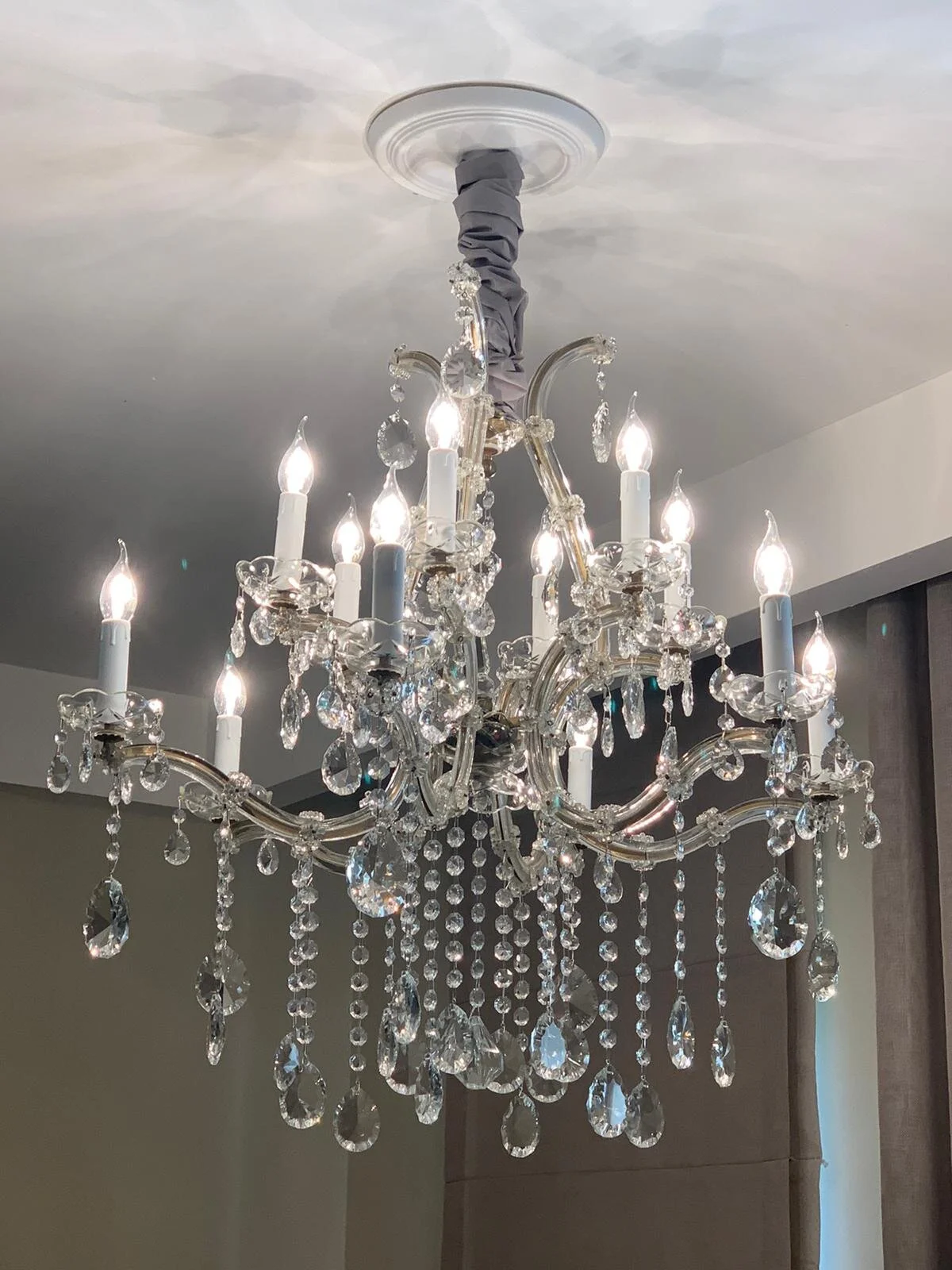 Throughout the years, we have had the opportunity to work on several chandeliers adorning beautiful Maltese homes. The chandeliers varied in style, with most dating back several decades, having gone through years of neglect. In most cases we are able to restore the chandelier. If the original shape remains recognisable, it is easy to clean the crystal pieces, and reassemble them against a renovated structure with a more modern electric system. Sometimes we are asked to alter the shape of the chandelier by dismantling it and reconstruct a new chandelier. In most cases where this takes place, the reason is that several parts of the chandelier would have gone missing or used in other chandeliers, since the preference is usually that of retaining the original shape.